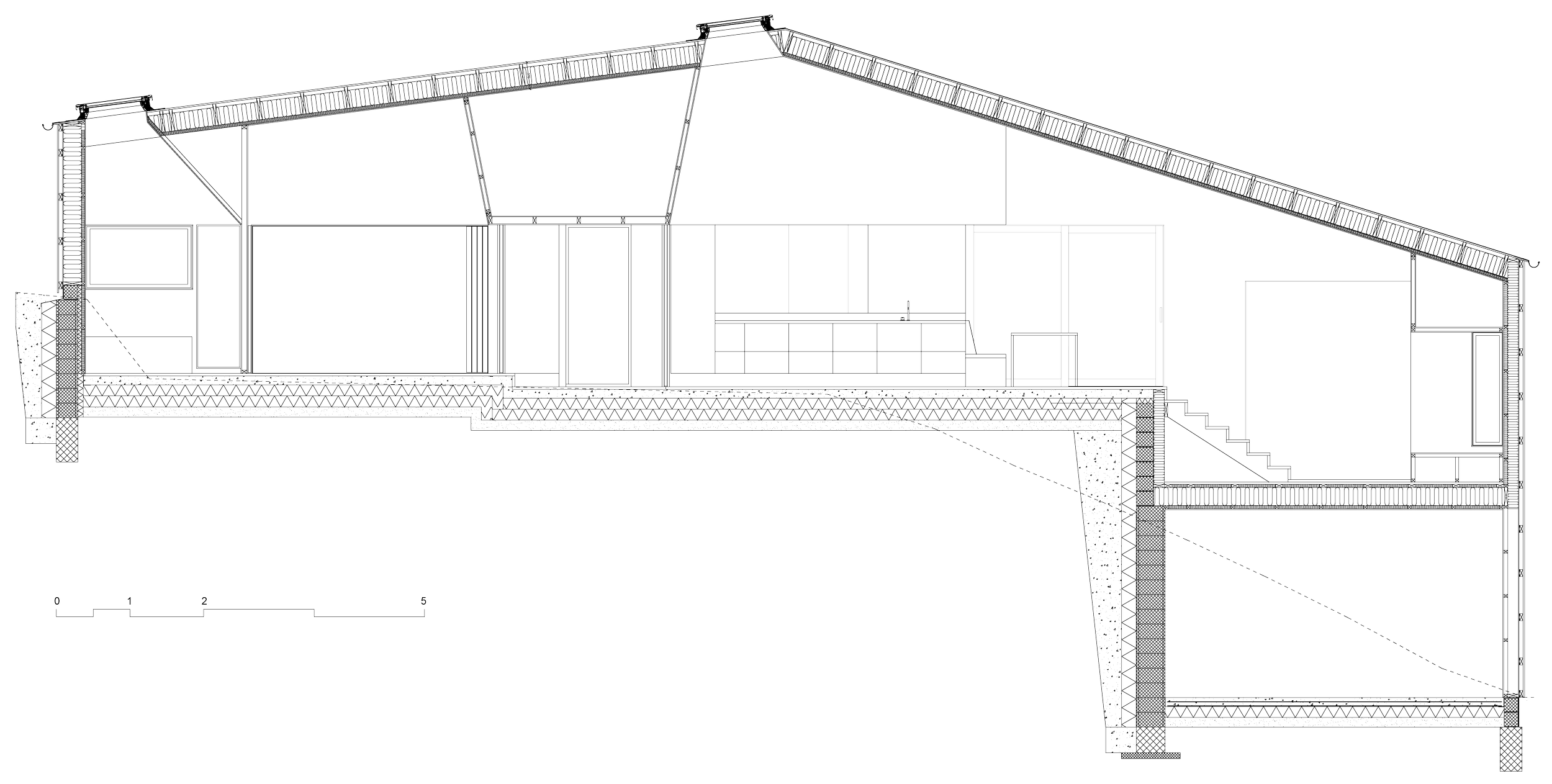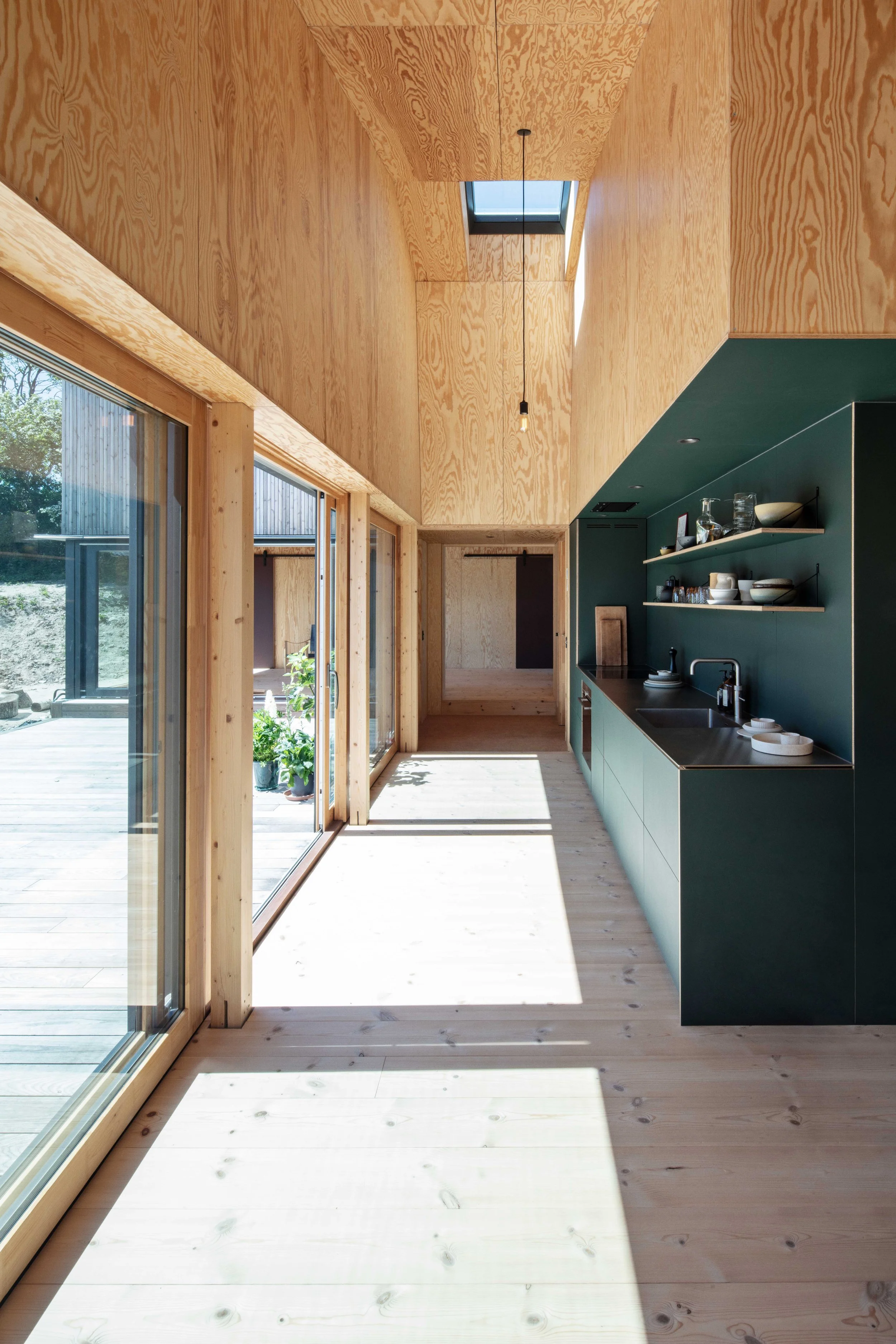 Huset er opført som et træhus fra inderst til yderst og har et tydeligt fokus på at opløse grænsen mellem ude og inde. De store åbninger mod både nord og syd trækker lyset og naturen ind i rummene og skaber en tæt forbindelse til omgivelserne. Dagslyset får lov at vandre gennem huset i løbet af dagen, hvor åbninger i facader og tag sikrer et varieret lysindfald, fra det bløde nordlys til det varme, direkte sollys fra syd og øst.