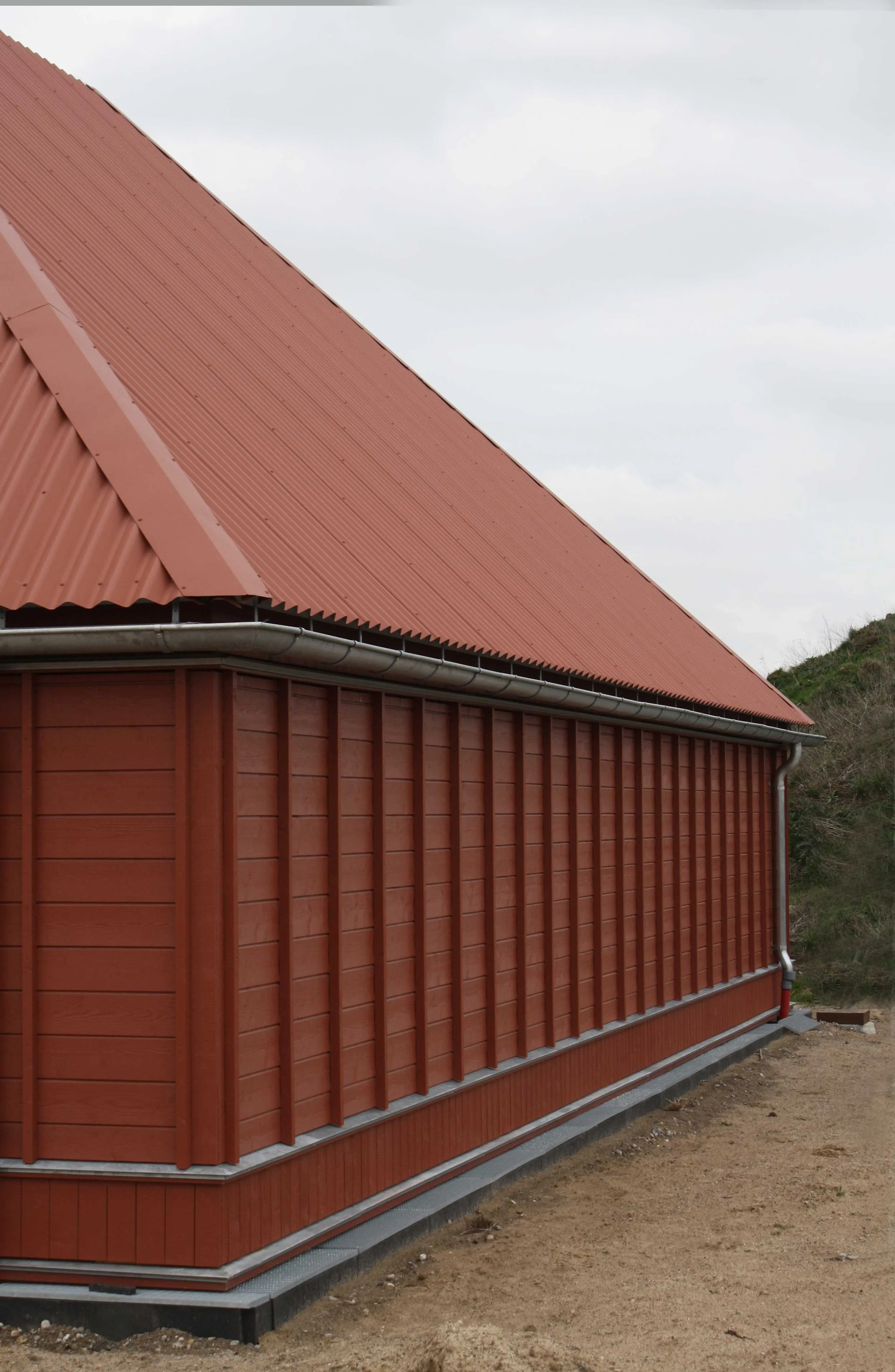 Bygningen rummer både rådgivningstilbud, træningsfaciliteter, en foredragssal, Klinik for Senfølger samt hospitalets palliative team. Den bærende konstruktion er udført som en gitterspærskonstruktion i fyrretræ, og facaderne står i teglrød træbeklædning med vandrette bræddeprofiler. Taget er beklædt med sinusplader i samme varme farve, der harmonerer med husets helhedsudtryk. Indvendigt er rummene beklædt med fyrtræsfinér med listeprofiler og troldtektplader.